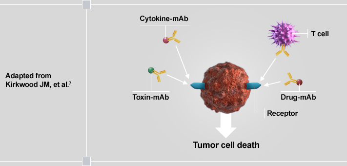 Tumor-specific monoclonal antibodies have become part of the therapeutic repertoire in treating leukemia, breast, colorectal, and head and neck cancers after improving OS and progression-free survival in randomized, Phase 3 clinical trials. Response rates of 8%-10% have been observed when these are used as a single agent in advanced stage, heavily pretreated, and recurrent disease. These rates increase to 30% when combined with traditional chemotherapy and/or radiotherapy.
