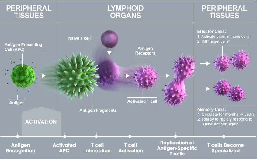 T cellsare activated by APCs to recognize and destroy cells containing foreign antigens