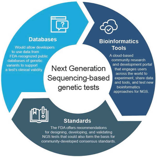 The vast amount of information generated through NGS poses novel regulatory issues for the FDA. While current regulatory approaches are appropriate for conventional diagnostics that detect a single disease or condition (such as blood glucose or cholesterol levels), these new sequencing techniques contain the equivalent of millions of tests in one. Because of this, the FDA has worked with stakeholders in industry, laboratories, academia, and patient and professional societies to develop a flexible regulatory approach to accommodate this rapidly evolving technology that leverages consensus standards, crowd-sourced data, and state-of-the-art open-source computing technology to support NGS test development. This approach will enable innovation in testing and research, and will speed access to accurate, reliable genetic tests.